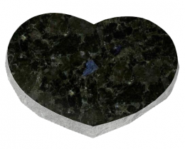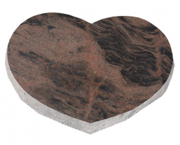 Piemiņas plāksne sirds formā, kas ir pulēta tikai augšpusē. Plāksnes sāni dabīgi kalti, apakša taisna. Atkarībā no izvēlētās granīta krāsas, kaluma vietas krāsa var atšķirties no bildē redzamās krāsas.